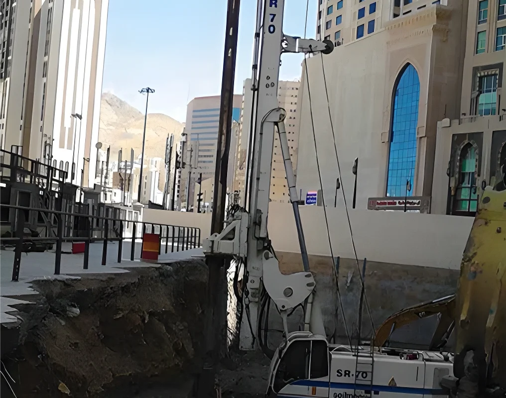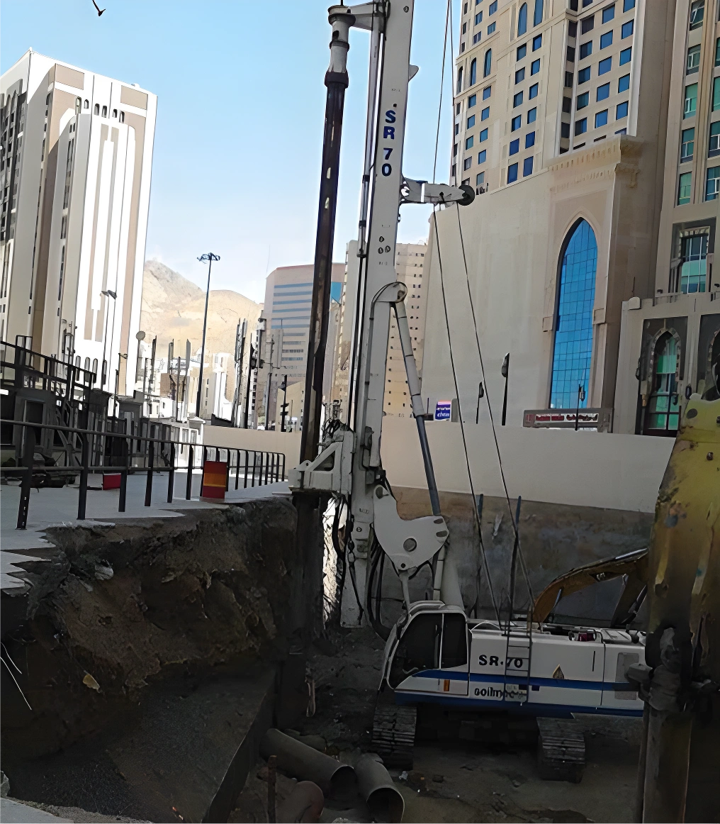 Eco Vista General Contracting Co. executed comprehensive earthworks, excavation, side support works, and dewatering systems for the third expansion of the Holy Haram at Al Anqari Site in Makkah.